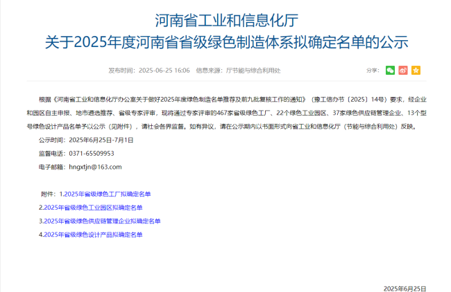 洛阳实华合纤有限责任公司荣获2025年度河南省绿色工厂荣誉称号
