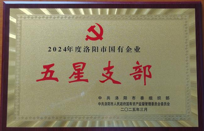 近日,合纤公司党总支荣获中共洛阳市委组织部、中共洛阳市人民政府国有资产监督管理委员会授予的2024年度洛阳市国有企业“五星支部”称号。